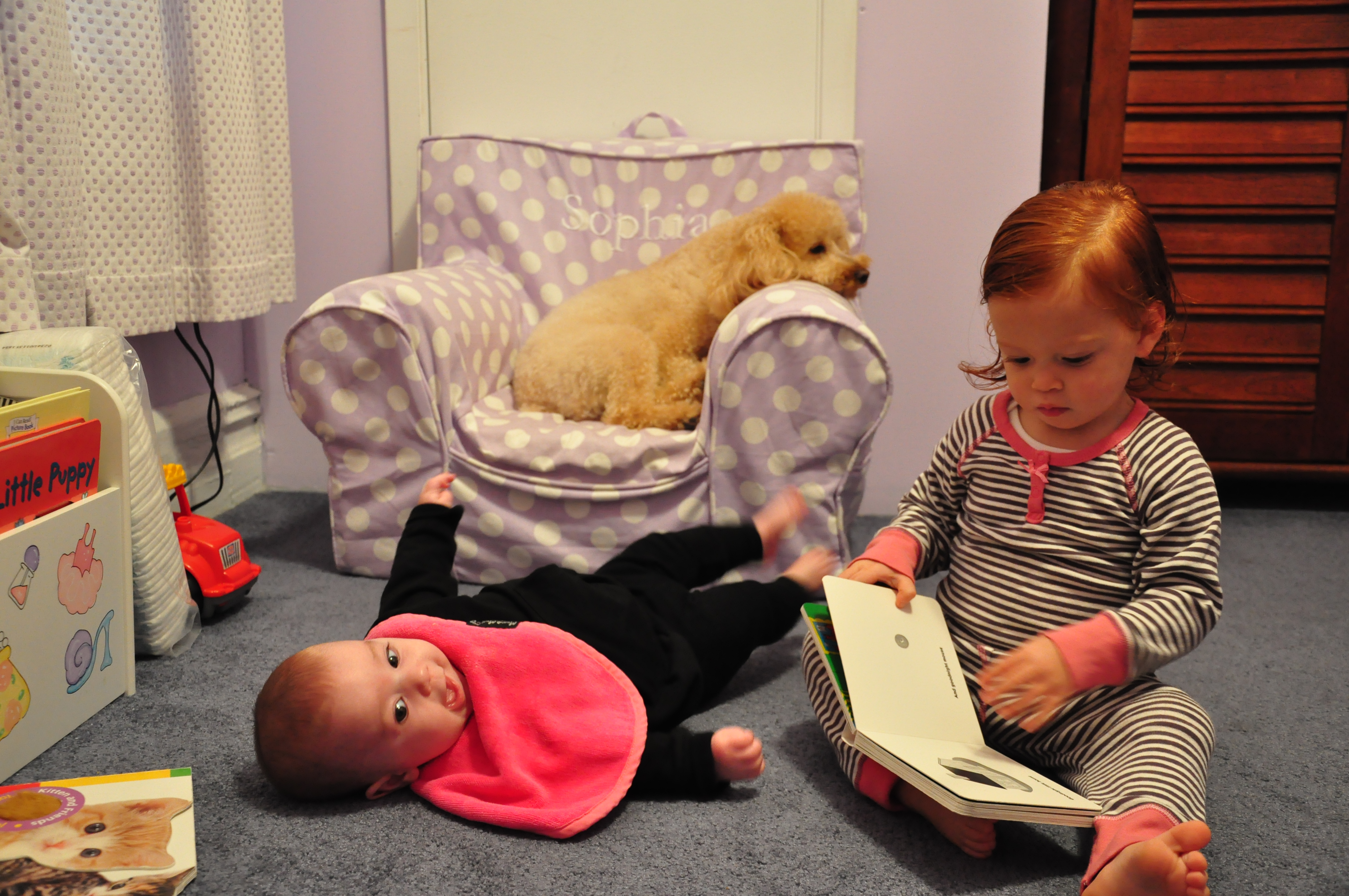 She thinks A is a funny baby, and is one of the only other people so far who has seen her fishy kissy face, which she REFUSES to do now! She makes me think twice before buying A ridiculous things when we’re shopping…apparently in my head $40 for a baby shirt is fine, Aunt D doesn’t agree! She always has a BuyBuyBaby coupon for us to use and she has been the accomplice to a lot of unintentional shoplifting from BuyBuyBaby, and everywhere else I forget things on the bottom of the cart. She gave me 75 hospital towels for my wedding shower which was one of my most appreciated gifts! She thinks it’s funny that I think she’s normal…but my view of normal is pretty screwy 😉 She’s a great teacher to all her students, a great nanny to all her babies and puppies, and a great Aunt to baby A.