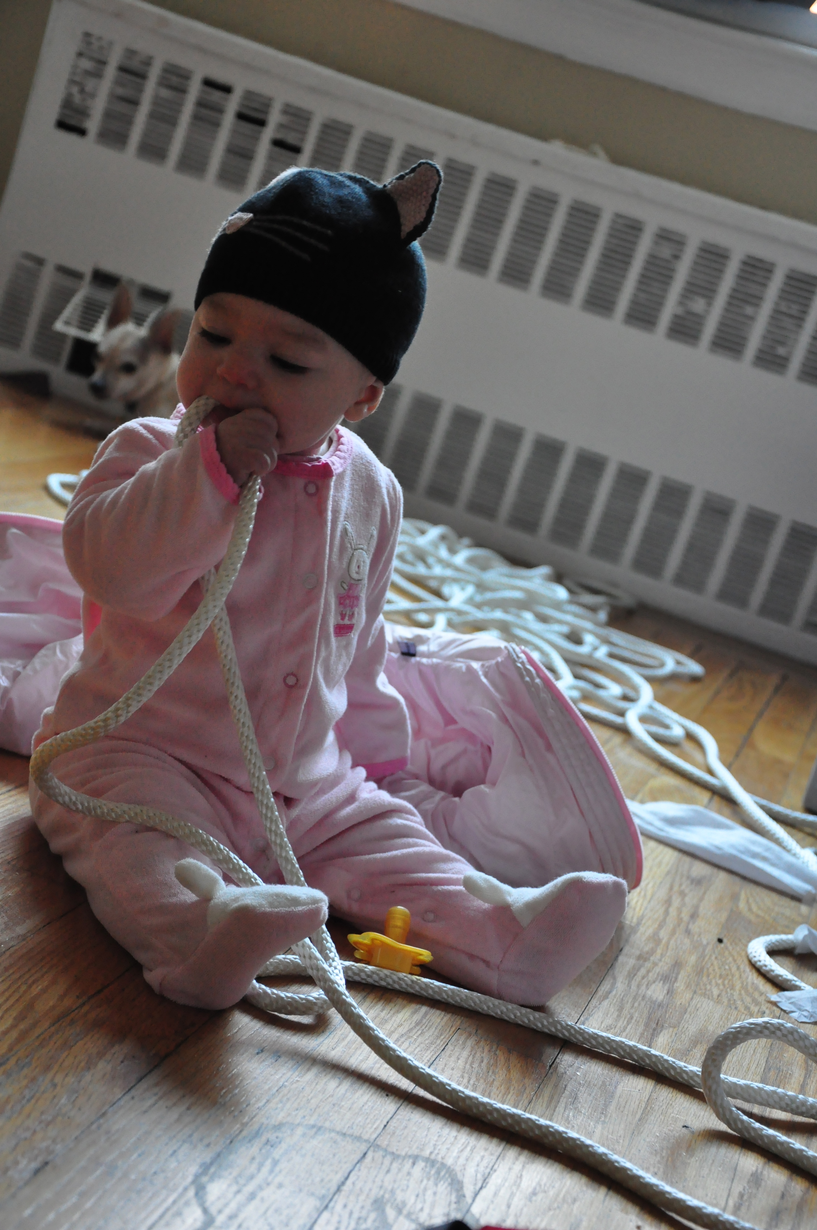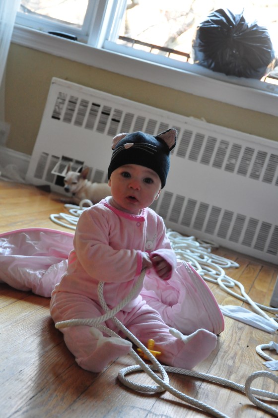 The funny part about this, is of course that we (responsible parents that we are) left the rope with our baby so we could take pictures, and of course the fact that we removed the legs to the couch and haven’t since been able to locate them!  Not good…going to go call Crate and Barrel to get some replacement legs!