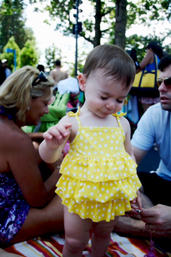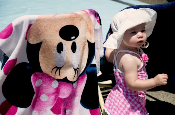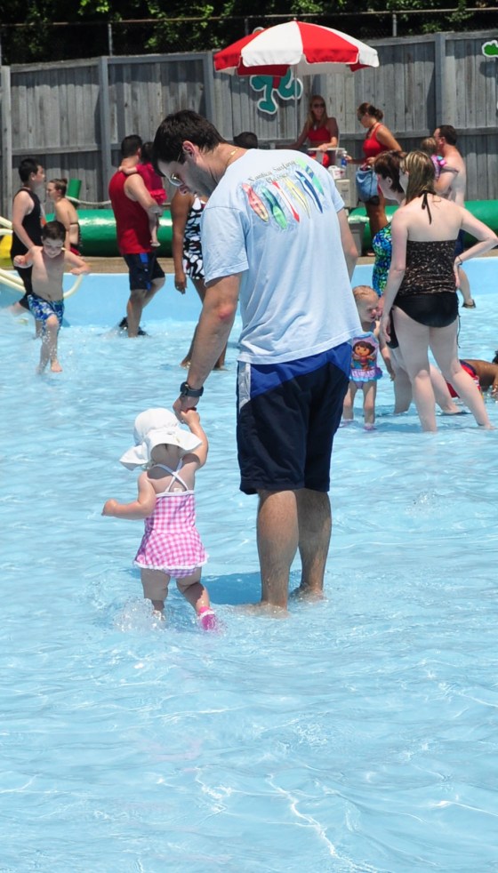 We got A dressed in her bathing suit & headed for the water stuff!