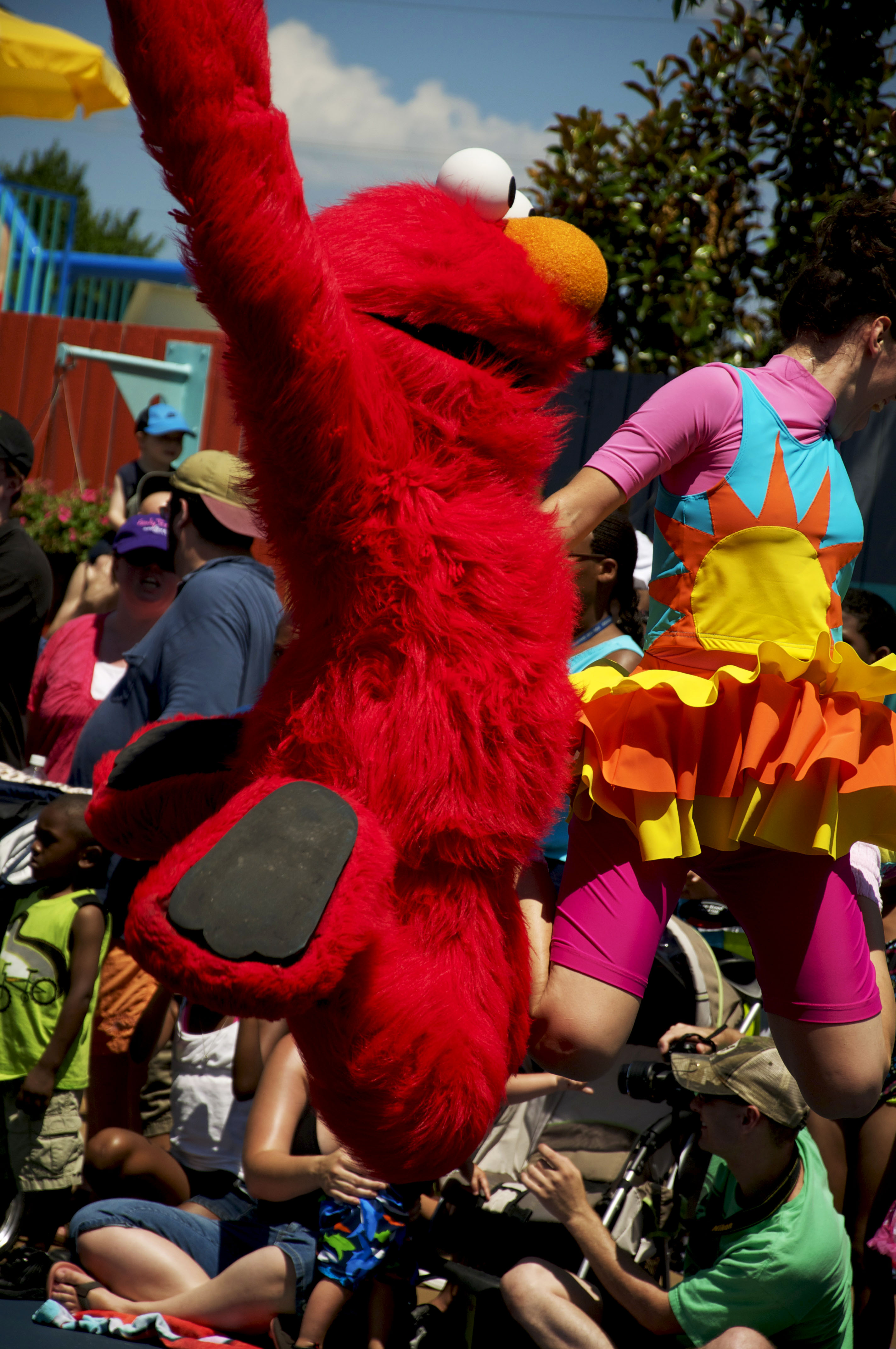 After that we went back to the pool to hang out a little while we waited for the Elmo Rocks show to start! It was a good thing we cooled off before the show, because that show was a lot of excitement for Miss A. She got a huge surprise when…