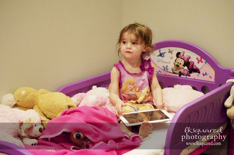 Monday…the crib was back up & she was back in it. Through trial and error we realized that she needs to learn how to self soothe herself back to sleep, but that won’t happen if she can get up and turn on her lights! She’s been doing really great in her crib & although she’s been crying herself to sleep for longer than she used to, it’s been about 2 days since she’s mentioned the bobo & I am so proud of her!