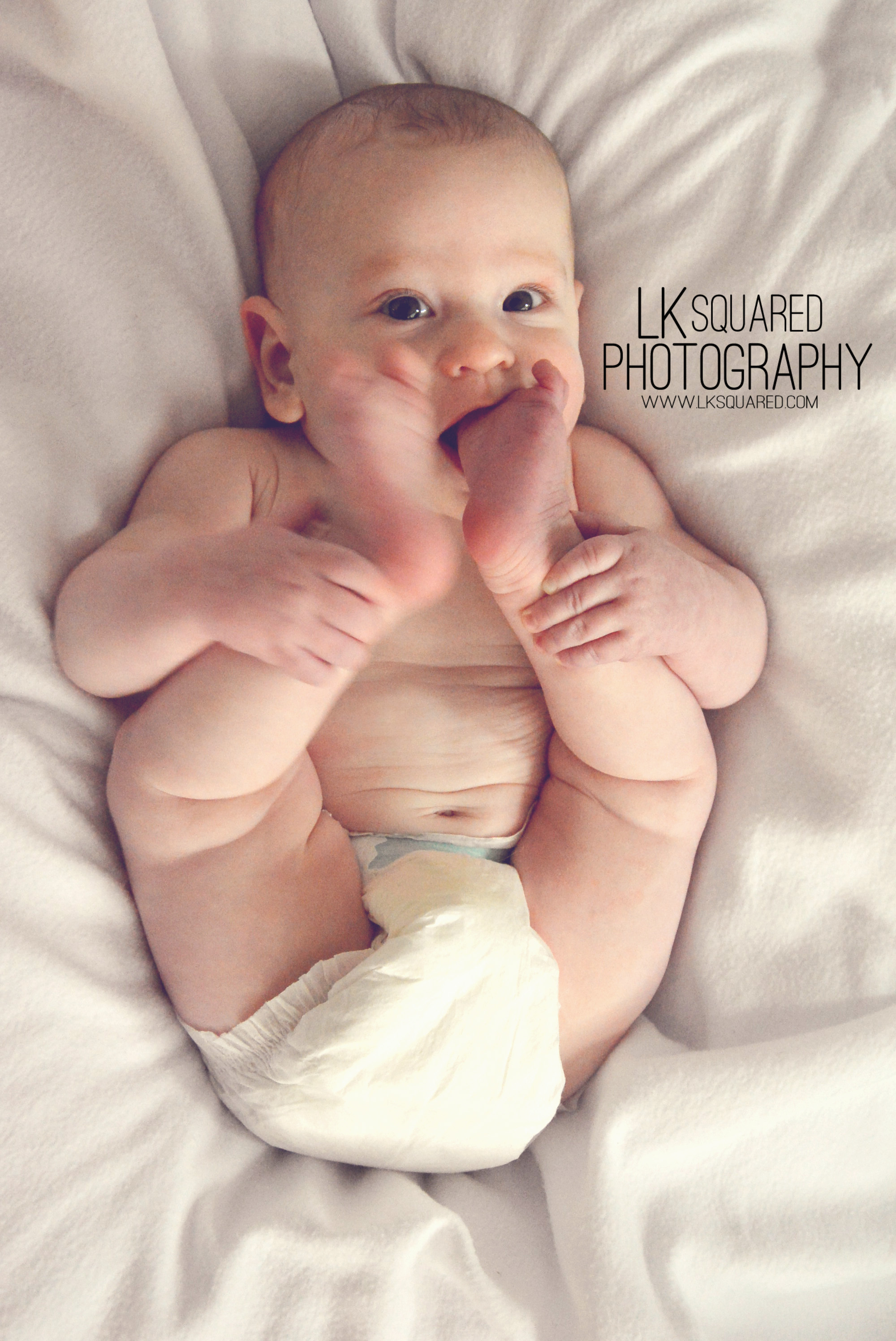 He is fascinated by his toes.  He loves to hold them, eat them, stare at them…they are his favorite toy.  The night that I posted his 4 month update, he decided to roll over.  He went belly to back.  He has perfected this move over the last month, and is now working on getting back to belly with as much ease.  Proud parent outlook…”Great!  he’s on track and doing what the Doctor expects him to do!”  Real parent outlook “Dammit…he slept wayyyy later in the morning before this rolling over nonsense!”  This month marked his first cold.  We have the head of his crib raised, and he usually wakes up with his head at the bottom….I’m sure that feels fantastic!  He’s loving his excer-saucer like crazy, and we also have been enjoying our Baby Bjorn bouncy chair!  He finds it is the best position to get maximum foot to mouth access!